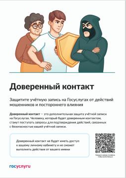 Доверенный контакт — это дополнительная защита учётной записи на Госуслугах.